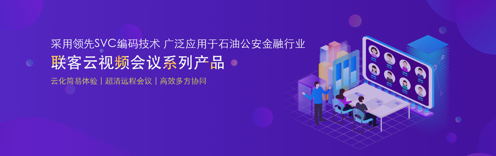 云视频产品是采用业界领先的SVC技术研发出来的视频会议产品。特别适合于在互联网环境下使用。产品视频高清,音质流畅清晰,能全面满足会议室、桌面办公会议、移动视频会议需求